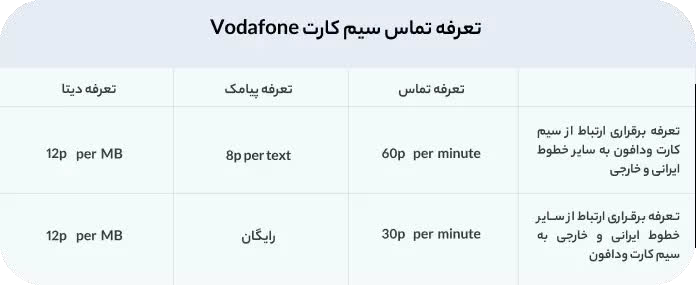 با خرید سیم کارت وودافون انگلیس می توان به امکانات زیر در ایران دسترسی پیدان نمود.
